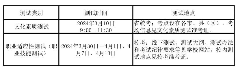 2.职业适应性测试(除中职毕业生以外的其他考生参加)